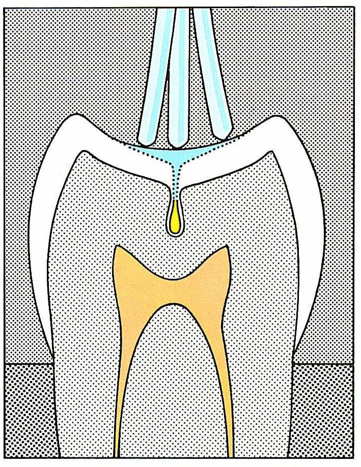 Jeder Seitenzahn hat eine Fissur, das ist eine schmale Rille auf der Kaufläche des Zahnes. Diese Rillen können mit der Zahnbürste nicht gereinigt werden. Daher entsteht Karies als erstes in den Fissuren.